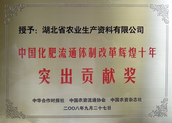 公司、公司董事長榮獲“中國化肥流通體制改革輝煌十年突出貢獻獎”