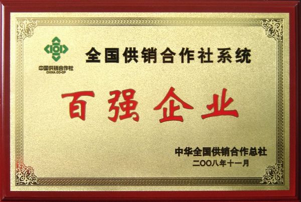 2008年11月,在全國供銷合作社系統(tǒng)企業(yè)工作會議上,公司被中華全國供銷合作總社評選為全國供銷社系統(tǒng)“百強企業(yè)”。