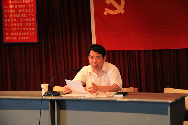 隨后舉行了新黨員入黨宣誓儀式,方薇、陳軍等四名新黨員面向黨旗,共同宣讀了入黨誓詞。